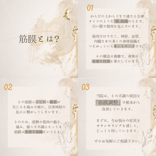 また、筋膜を調整する事で骨盤や姿勢の歪みも整い、根本改善につながっていきます💡