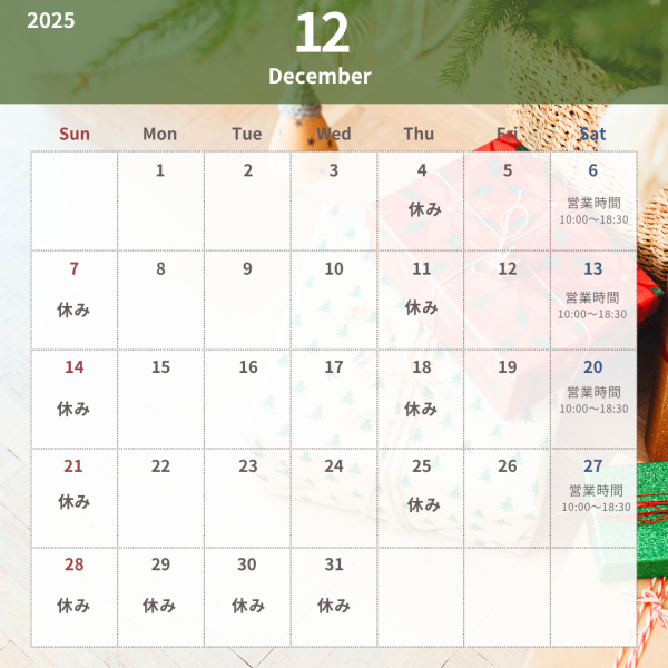 🎄12月の営業日のご案内です🎄 木・日以外は休まず営業しております!