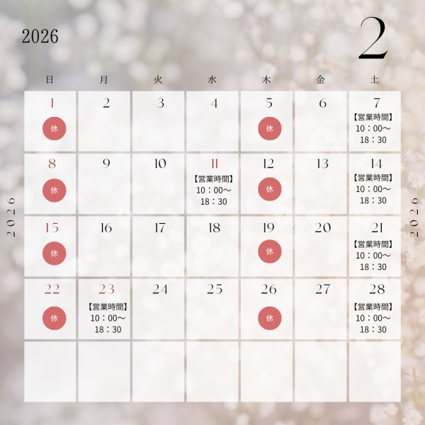 2月の営業日カレンダー