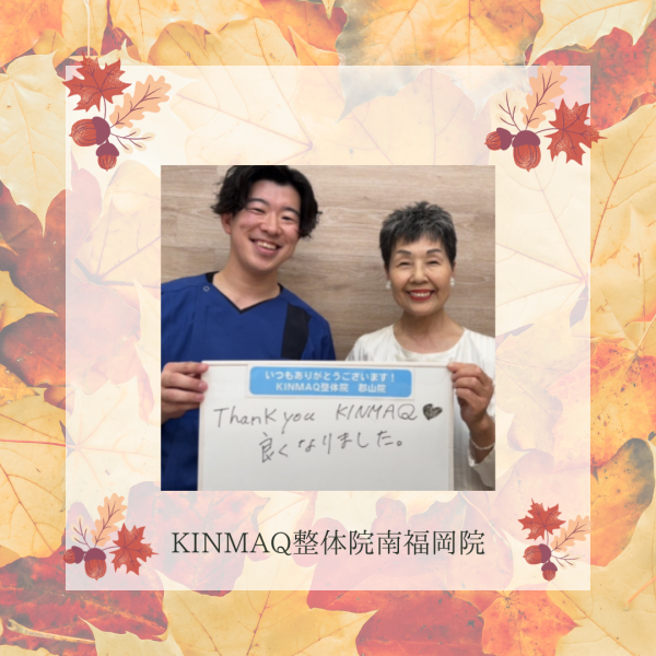 こんにちは!KINMAQ整体院南福岡院です😌お客様からいただいたお声をご紹介いたします🍀